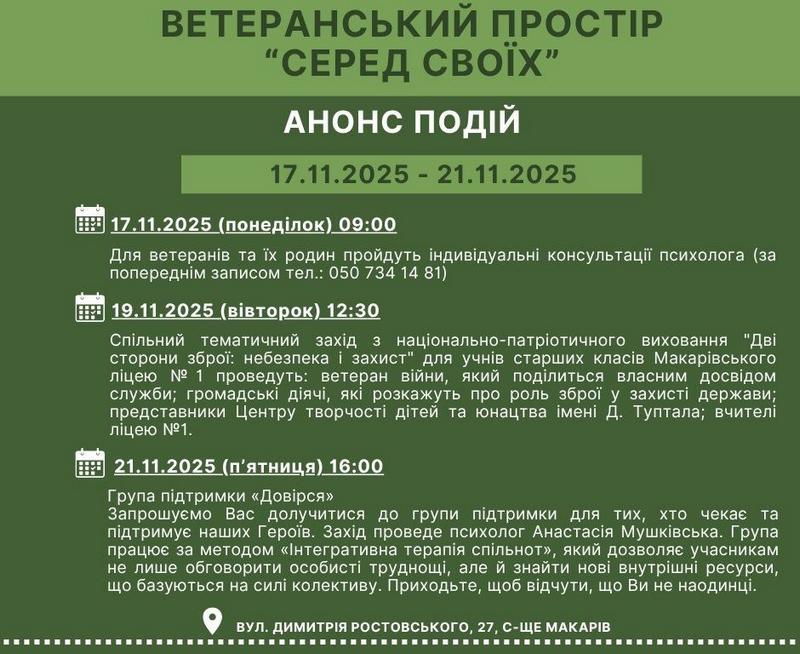 Анонс подій ветеранського простору “СЕРЕД СВОЇХ”