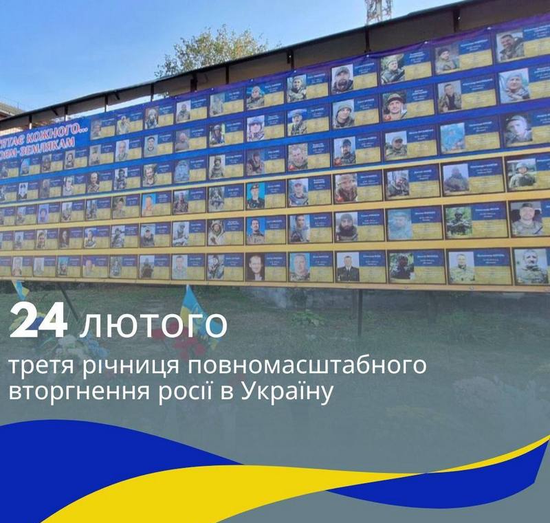 🇺🇦 24 лютого у 3-ю річницю повномасштабного вторгнення росії в Україну вшановуємо пам’ять загиблих Героїв