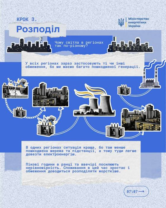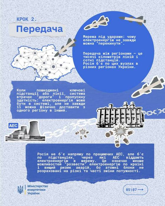 🔌 «Чому в одних регіонах світла більше, ніж в інших?», «Чому у сусіда світло є, а в мене немає?» – ці питання стали буденністю останніх місяців 10.02.2026 🔌 «Чому в одних регіонах світла більше, ніж в інших?», «Чому у сусіда світло є, а в мене немає?» – ці питання стали буденністю останніх місяців. Щоб було менше міфів та здогадок Міністерство енергетики України запускає серію матеріалів як_працює_світло Починаємо з бази: як електрика проходить шлях від електростанцій до нашого дому, що таке передача і розподіл, і чому після ударів або пошкоджень ситуація зі світлом може відрізнятися не тільки в регіонах, але навіть і у сусідніх будинках. А поки ви читаєте цей текст енергетики продовжують працювати 24 на 7: ремонтують лінії й підстанції, перебудовують схеми живлення і тримають систему в роботі попри удари. Дякуємо їм за цю титанічну працю. ℹ️ За інформацією Міненерго України Поділитись: Facebook Telegram