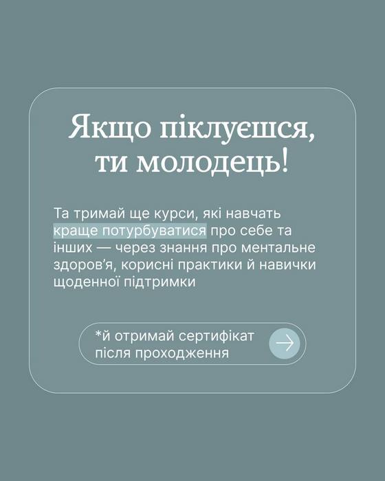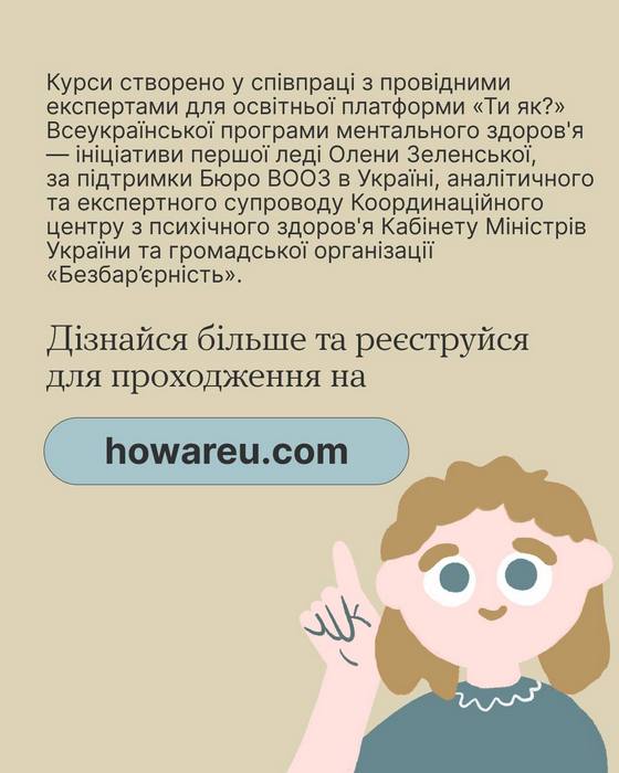 Добре бути собі та іншим підтримкою. А щоб стати ще стійкішою і міцнішою опорою — навчайся з «Ти як?» 🎓 30.09.2025 Знайомся з курсами в каруселі та переходь за посиланнями, аби дізнатися більше і зареєструватися: 📌 Профілактика вигорання: розвиток психологічної стійкості 📌 Секрети дитячої поведінки: причини, реакції, рішення 📌 Ключі до успішного спілкування та розвитку мовлення 📌 Надмірна тривога у дітей: допомагаймо разом! Буде корисно (і з сертифікатом) 🤝 Поділитись: Facebook Telegram
