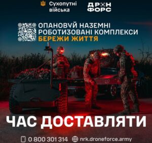 Опановуй наземні роботизовані комплекси – доєднуйся до підрозділів безпілотних систем ЗСУ 18.09.2025 Сухопутні війська Збройних Сил України підготували спеціальну програму відбору та підготовки фахівців БпС. Крила, FPV, розвідувальні коптери, бомбери, НРК – всім цим Ви зможете навчитись керувати, налаштовувати та ремонтувати завдяки проєкту Drone Force. DRONE FORCE – центр рекрутингу та підготовки фахівців безпілотних систем Сухопутних військ Збройних Сил України. З нами ти зможеш долучитися до одного з підрозділів Сухопутних військ та опанувати найсучаснішу професію у війську – стати оператором БпЛА, НРК або іншим фахівцем безпілотних систем. Ми пропонуємо пройти відбір та підготовку в найтехнологічнішу частину війська з найкращими можливостями:▫️ гарантована посада фахівця безпілотних систем;▫️ можливість обрати підрозділ та напрямок фаху;▫️ супровід на етапі оформлення документів та навчання. 👉 Готовий долучитись? Переходь за посиланням: https://landforces.mil.gov.ua/df/ Поділитись: Facebook Telegram