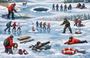 ⚠️ Правила безпечної поведінки на льоду ⚠️ 02.01.2026 Зима – чудова пора для активного відпочинку: ковзани, лижі, санчата дарують багато радості. Проте варто пам’ятати, що лід може бути небезпечним, особливо під час відлиг або на тонких ділянках. Щоб зимові розваги були безпечними, важливо дотримуватися простих правил. ❄️ Під час перебування на льоду:▪️ заздалегідь з’ясуйте, чи немає небезпечних місць – поблизу стоку води, очерету, кущів або під заметами крига часто тонка;▪️ оминайте ділянки з товстим шаром снігу – під ним лід завжди слабший;▪️ не збирайтеся великими групами на одній ділянці;▪️ не пробивайте багато лунок в одному місці;▪️ не виходьте на лід поблизу вимоїн і далеко від берега;▪️ перевіряйте міцність льоду палицею;▪️ майте при собі міцну мотузку (12–15 м), дошку або велику гілку. 🚫 Запам’ятайте:▪️ виходити на лід наодинці – небезпечно;▪️ не можна виходити на лід під час льодоходу та льодоставу, у місцях швидкої течії, біля джерел, очерету, під час і після тривалих відлиг;▪️ не залишайте дітей на льоду без нагляду;▪️ переходячи водойму, рухайтеся один за одним на відстані 5-6 метрів;▪️ якщо лід почав тріщати – не біжіть, а повільно відходьте, не відриваючи ніг від поверхні. 🆘 У разі небезпеки:▪️ не панікуйте й уникайте різких рухів;▪️ якщо провалилися під лід – намагайтеся лягти на кригу та повзти у бік берега;▪️ не кидайтеся на лід для порятунку іншої людини;▪️ викликайте допомогу за телефонами 101 або 112;▪️ допомагайте лише з безпечної відстані, використовуючи мотузку, палицю чи інші підручні засоби. ⚠️ Уважність, обережність і дотримання елементарних правил допоможуть зберегти життя та здоров’я вам і тим, хто поруч. Бережіть себе! Поділитись: Facebook Telegram