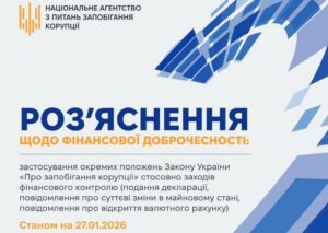 Путівник з доброчесності: НАЗК оприлюднило оновлений посібник з декларування 13.03.2026 Прозорість починається з уважності. Щоб кампанія декларування пройшла для вас легко та без стресу, НАЗК підготувало оновлений комплексний посібник. Це не просто збірник правил, а покрокова інструкція, яка враховує всі зміни та доповнення останніх років. Хоча основу складають роз’яснення 2023 року, посібник залишається головним путівником для суб’єктів декларування, що подають щорічну декларацію за звітний 2025 рік. Комплексний посібник Поділитись: Facebook Telegram