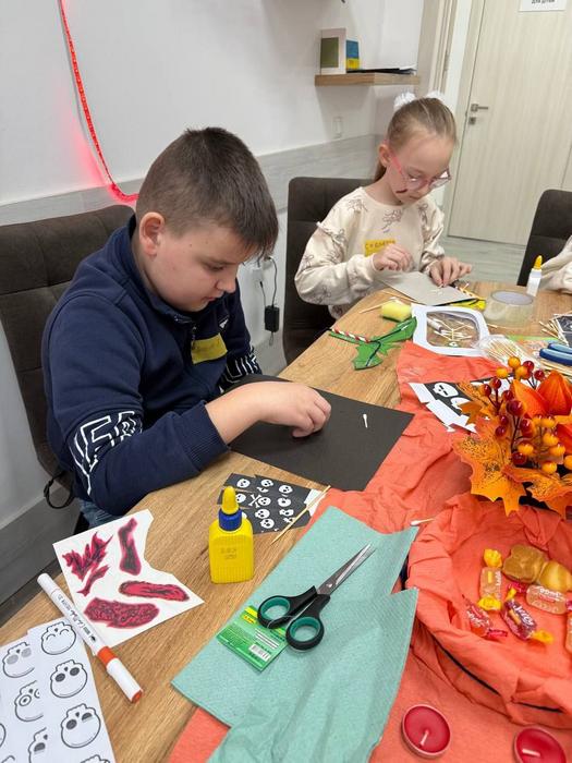 🎃 Таємниці Хелловіну у просторі “СЕРЕД СВОЇХ” 03.11.2025 Магія, сміх і гарбузовий настрій — саме так діти ветеранів та захисників провели незабутній день у ветеранському просторі! У невимушеній атмосфері малеча ознайомилася із традиціями західного свята Хелловіну, дізналася про його історію та символіку, розгадувала тематичні загадки, а під час майстер-класу створювала власні святкові вироби й вирізала веселі гарбузи 🎨🕯. Простір наповнився сміхом, щирими усмішками й відчуттям справжнього свята. А наприкінці на всіх чекали солодкі сюрпризи 🍬 та море гарного настрою! Такі зустрічі дарують дітям не просто розвагу — вони створюють атмосферу тепла, дружби й підтримки, де кожен відчуває: поруч завжди є свої 💛. Поділитись: Facebook Telegram